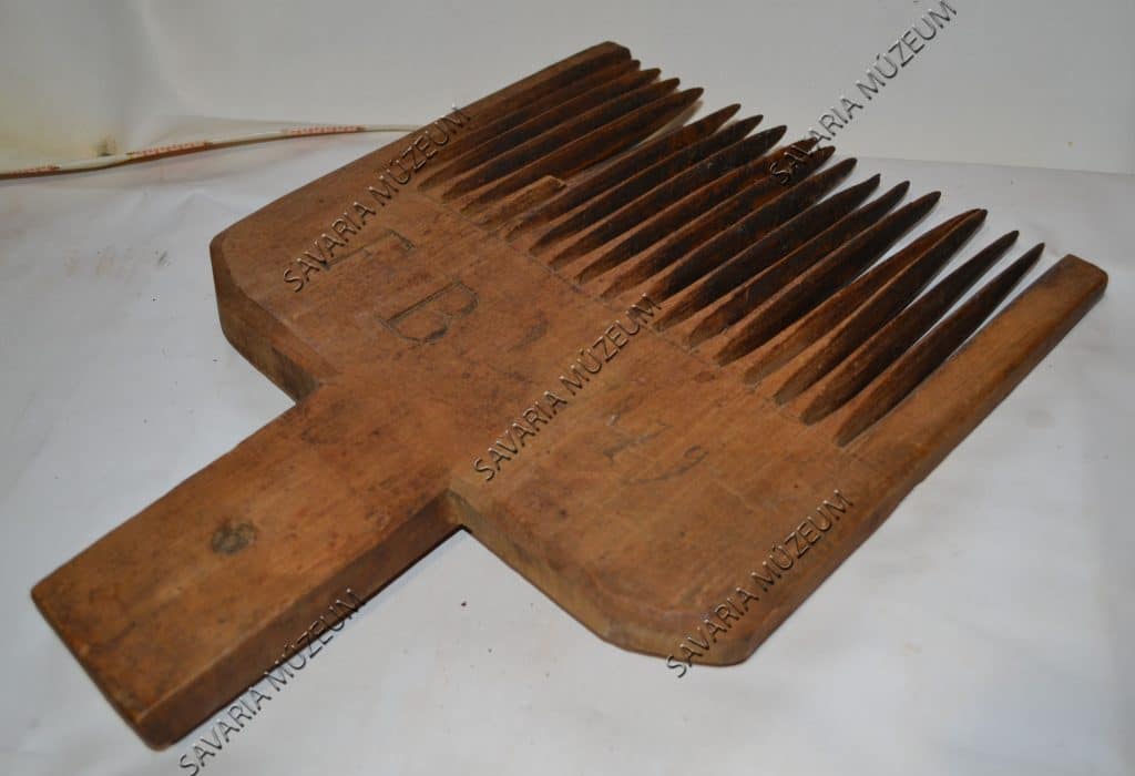A wooden base carved from a single piece of wood, with pointy teeth at the end. This was used to pull the flax seeds off the top of the plant. In Hungary it was used only in the westernmost part of Transdanubia. It is widespread among Slovenians.